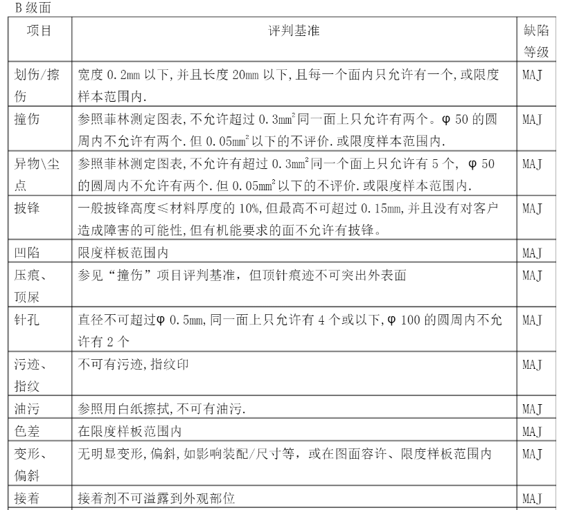 B等級(jí)沖壓件檢測(cè)要求